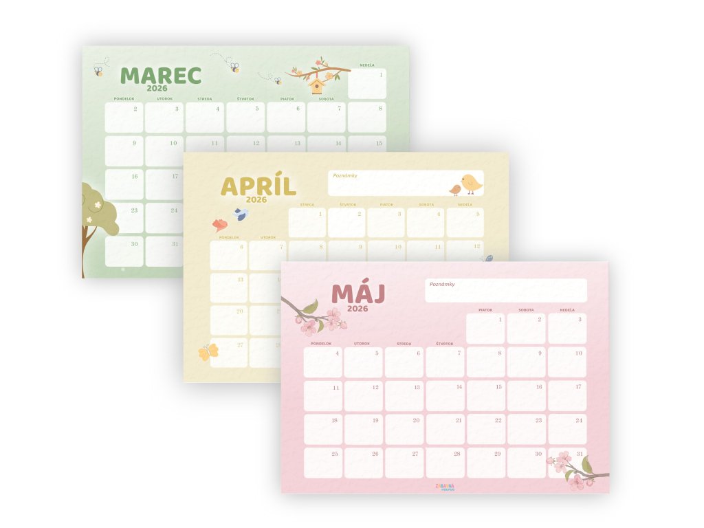 3 mesačné kalendáre: marec, apríl, máj