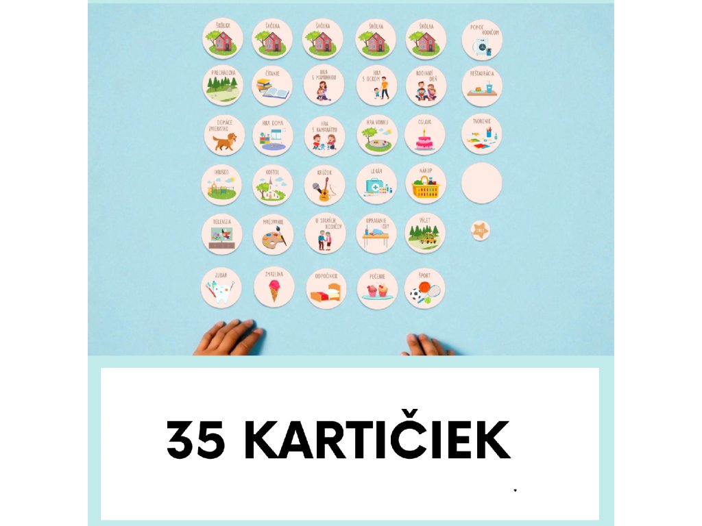 34 kartičiek s obrázkami a nápismi pre každodenné úlohy a aktivity