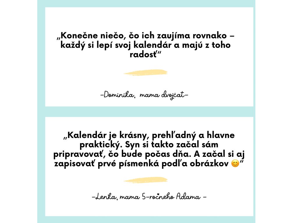 kartičky sa upevňujú na kalendár pomocou suchých zipsov – jednoduchá manipulácia aj pre malé detské rúčky