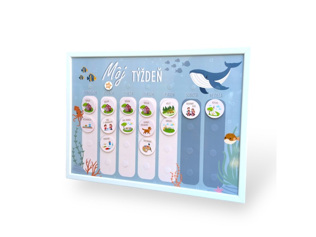 Týždenný kalendár na suchý zips- OCEÁN Interaktívny kalendár, A3, 35 kartičiek na suchý zips