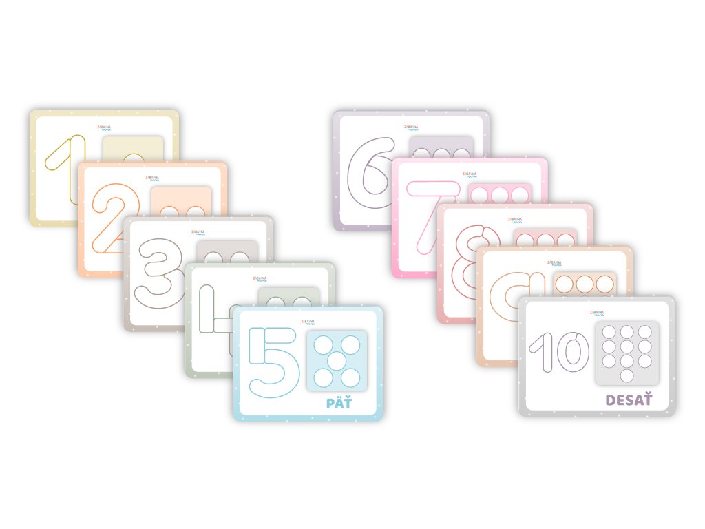 Sada obsahuje 10 tematických kartičiek na poznávanie a precvičovanie čísel od 1 do 10, ktoré deti dotvárajú pomocou plastelíny alebo modelovacej hmoty. Ilustrácie sú navrhnuté tak, aby deti motivovali k tvoreniu a modelovaniu.