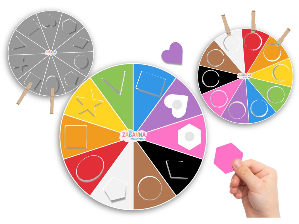Pomôžte deťom hravou formou naučiť sa rozoznávať a pomenúvať 10 farieb a 10 tvarov! Táto vzdelávacia aktivita pre deti podporuje rozvoj logického myslenia, vizuálnej gramotnosti a jemnej motoriky.