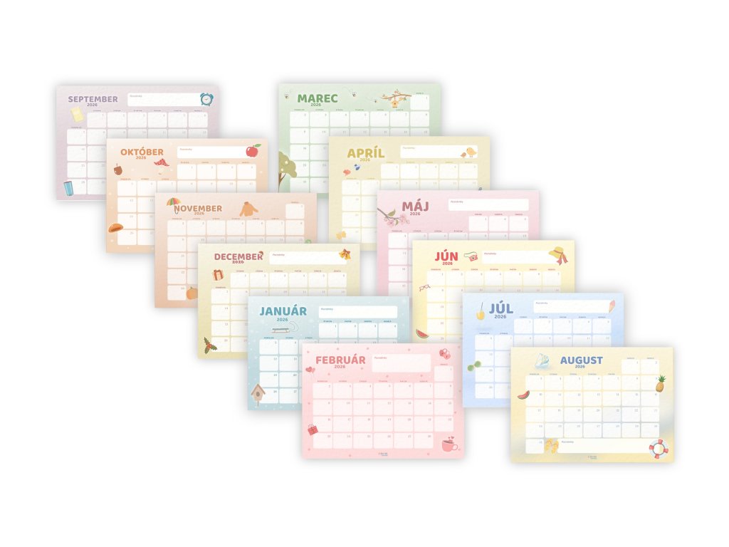 Tento balíček obsahuje všetkých 12 mesiacov – od januára do decembra 2026 a je ideálny na plánovanie rodinných povinností, školských aktivít aj spoločných chvíľ. Veľkosť súboru je 297 MB.